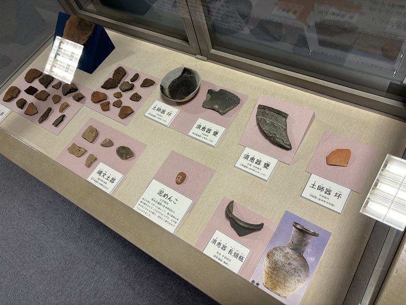 一連の調査で出土した縄文土器や、平安時代の土師器・須恵器などを展示しています。